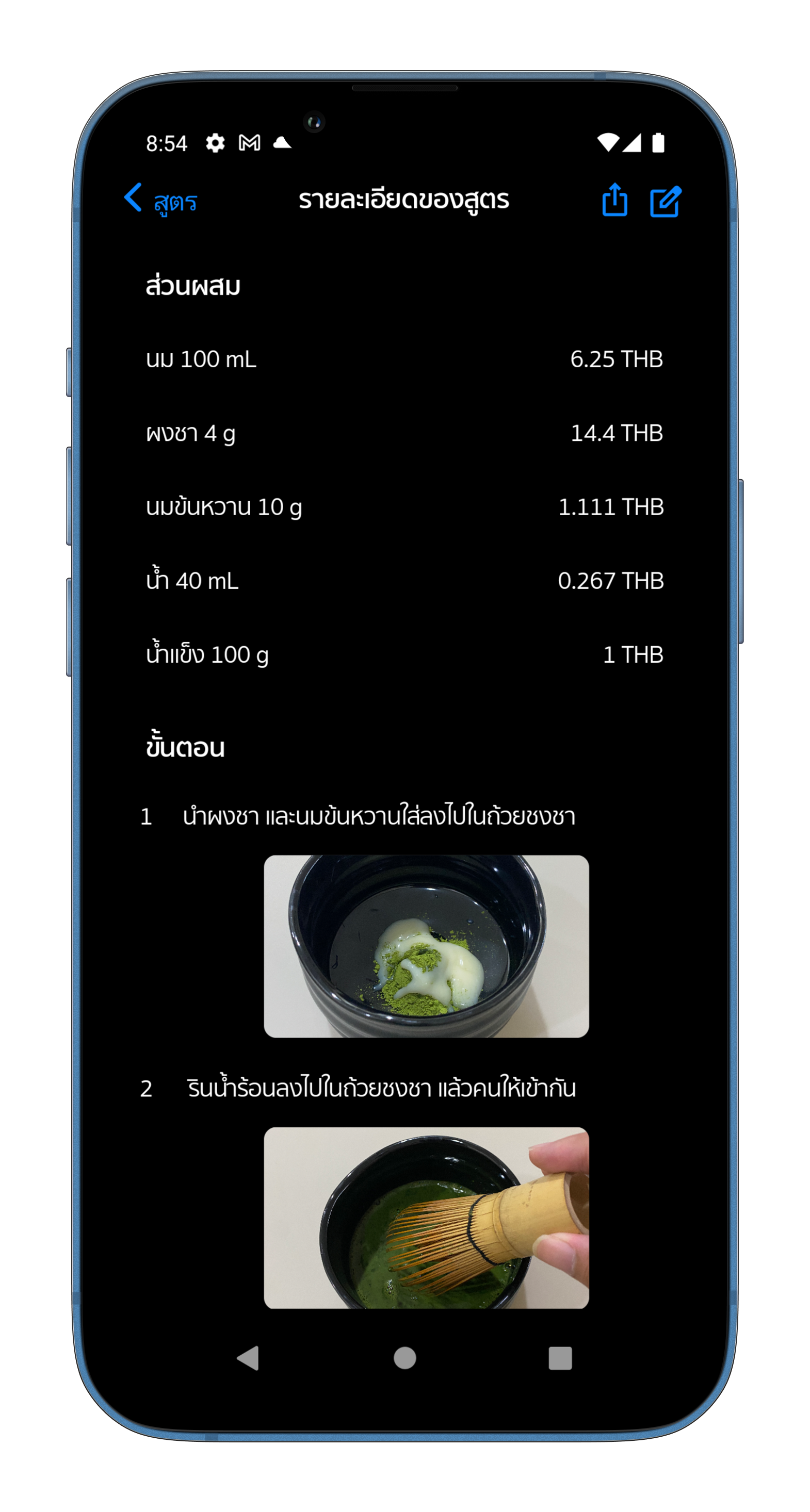 Create your own recipes and calculate the costs to find a reasonable price for sale.